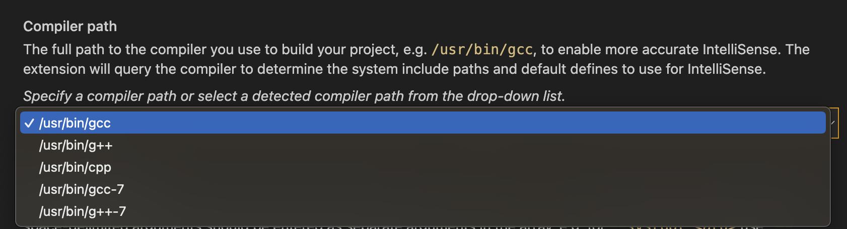 Edit “compilerPath” setting -